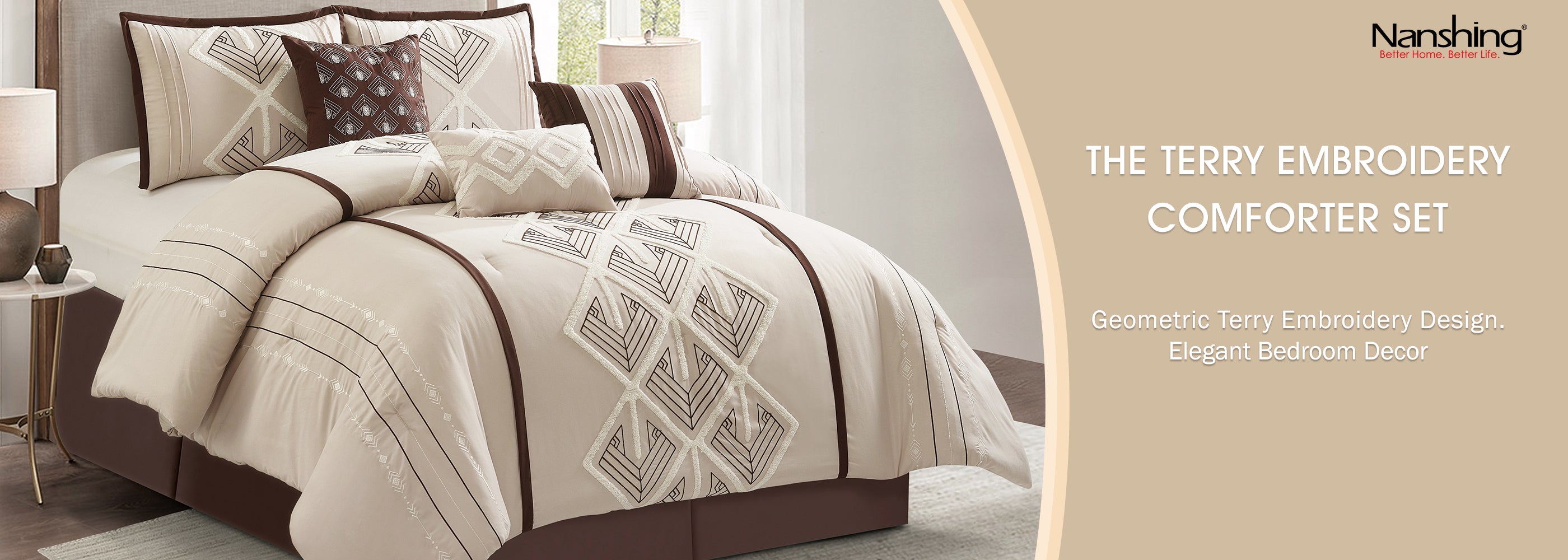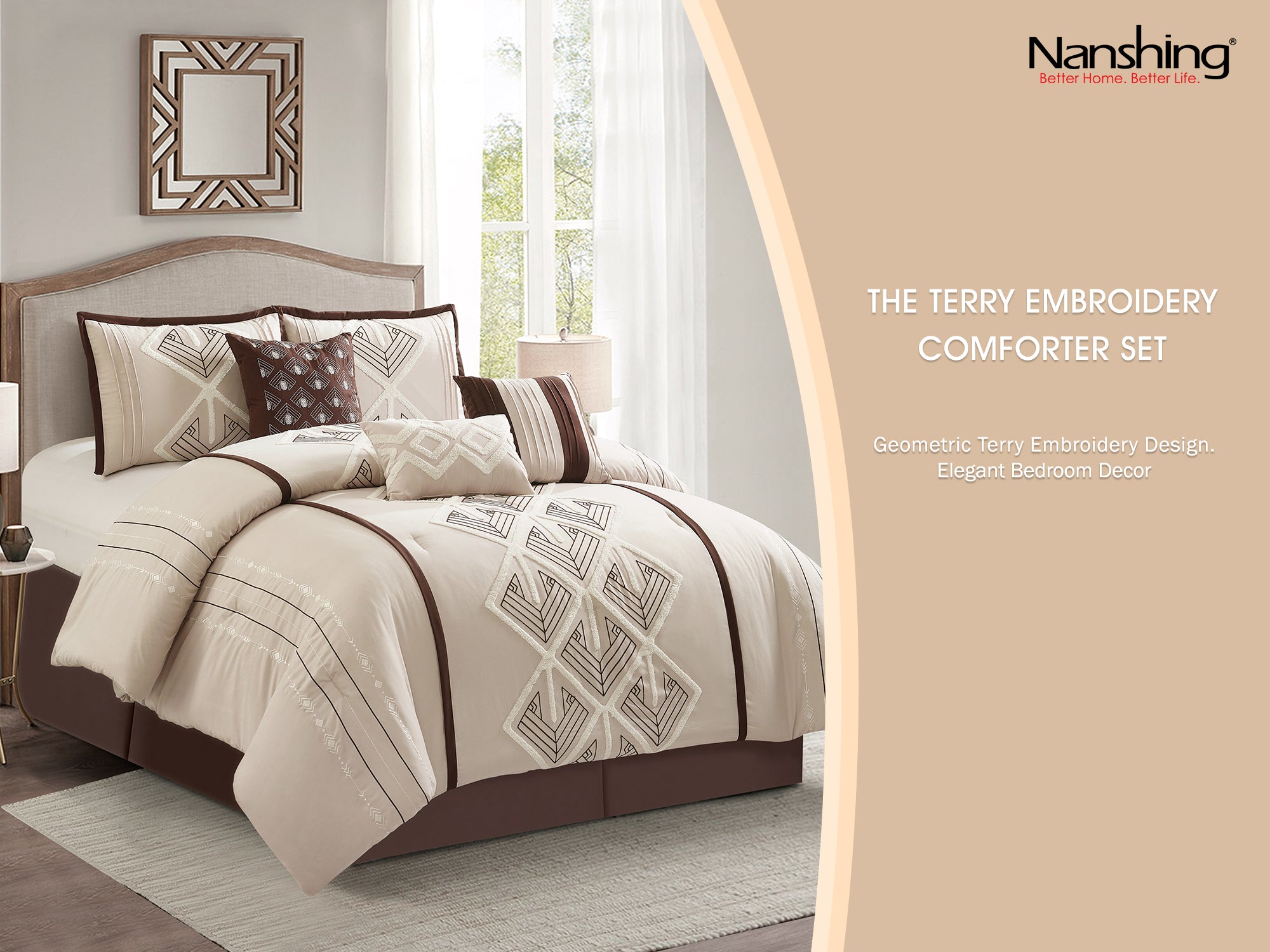 Give your bedroom a soft luxurious update with this beautiful 7 piece terry embroidery comforter set with black and white on soft gray. Constructed of 100% polyester fabric and filling, this bed set comes with 1 comforter, 2 shams, 1 bed skirt, and 3 decorative pillows that flaunt excellent workmanship and quality. The complete bed set built to last, this bedding set is made with strict quality control standards and comes with everything you need for a complete bedroom makeover. Made with high strength polyester, this beautiful bedding set can be machine washed and dried on a low tumble setting for easy care.