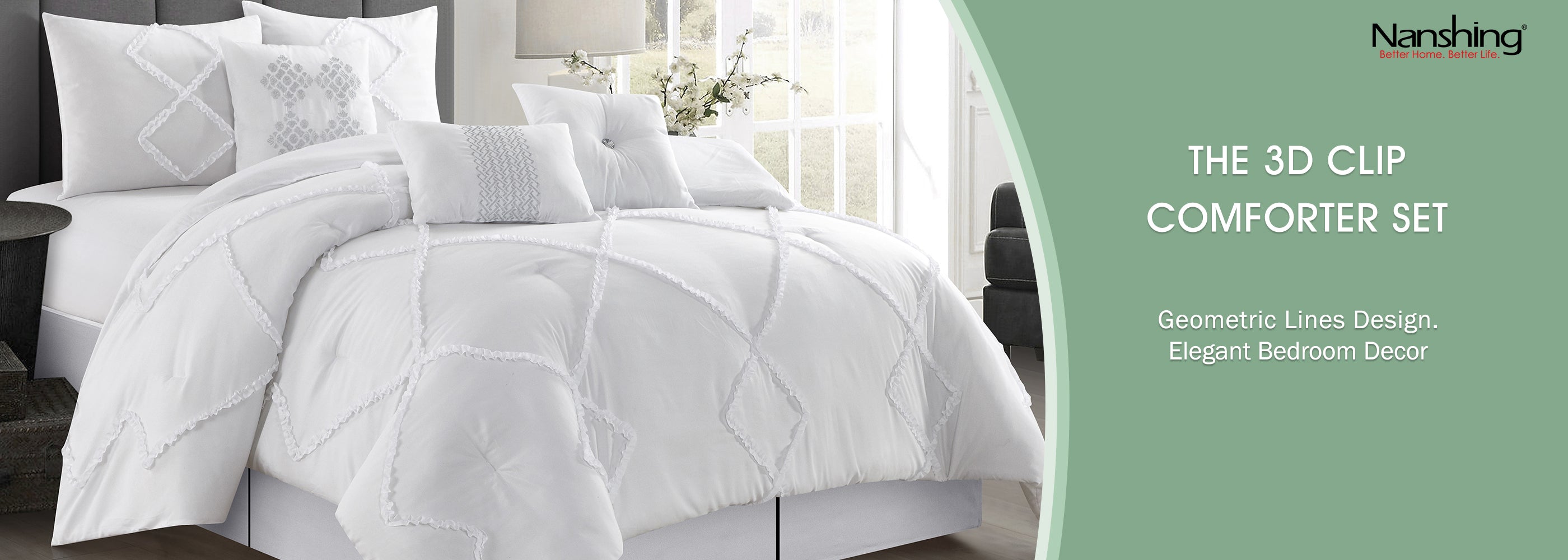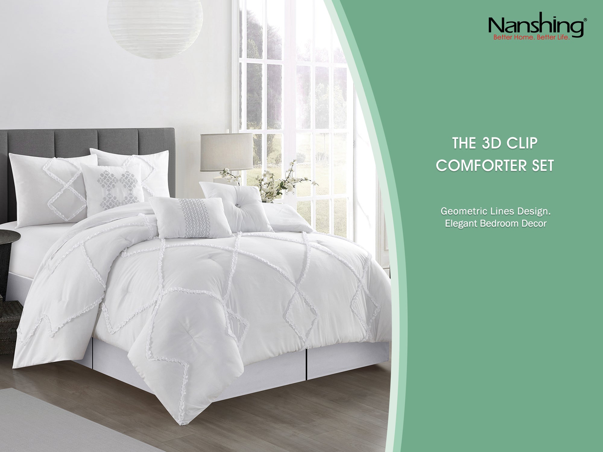 Turn your bedroom into a slumber retreat with this beautiful and elegant comforter set featuring a 3D clip jacquard technique for surface interest in an interlocking pattern. This 7PC set is a quick refresh to your bedroom decor that works for varied lifestyles such as casual elegance, boho, farmhouse, and back-to-school. Constructed of 100% polyester fabric and filling, this bed set comes with 1 comforter, 2 shams, 1 bed skirt, and 3 decorative pillows that flaunt excellent workmanship and quality. The complete bed set built to last, this bedding set is made with strict quality control standards and comes with everything you need for a complete bedroom makeover. Made with high strength polyester, this beautiful bedding set can be machine washed and dried on a low tumble setting for easy care.
