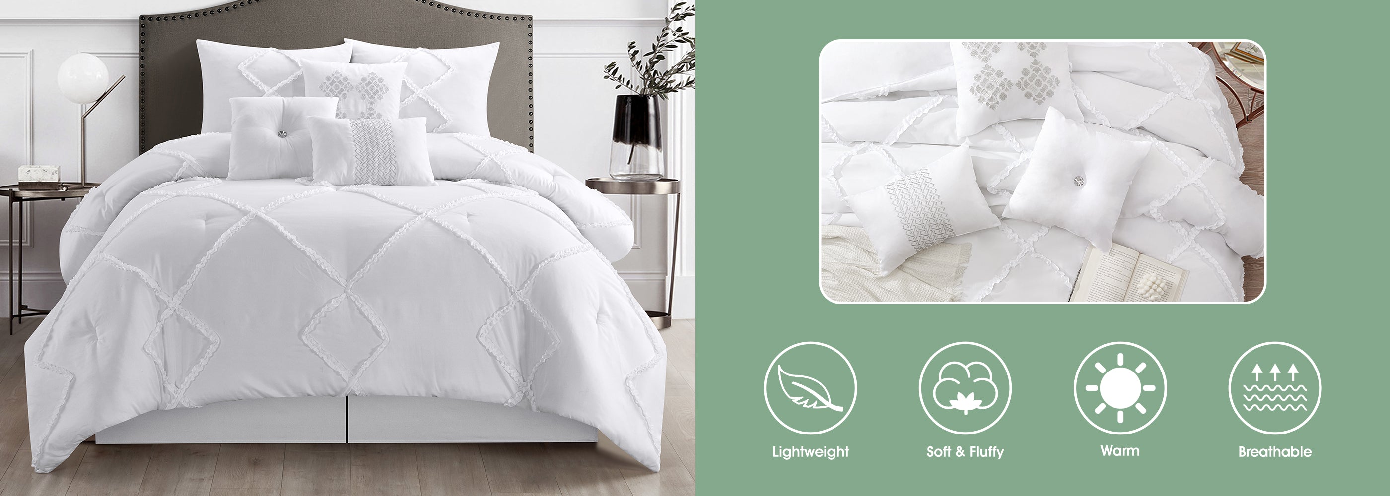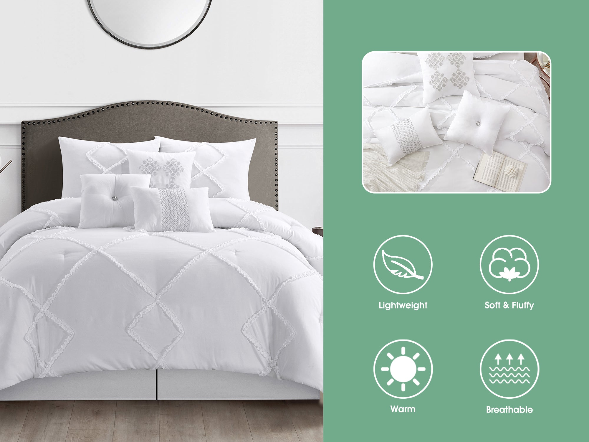 Alissar 7 Piece Comforter Set, White, Solid