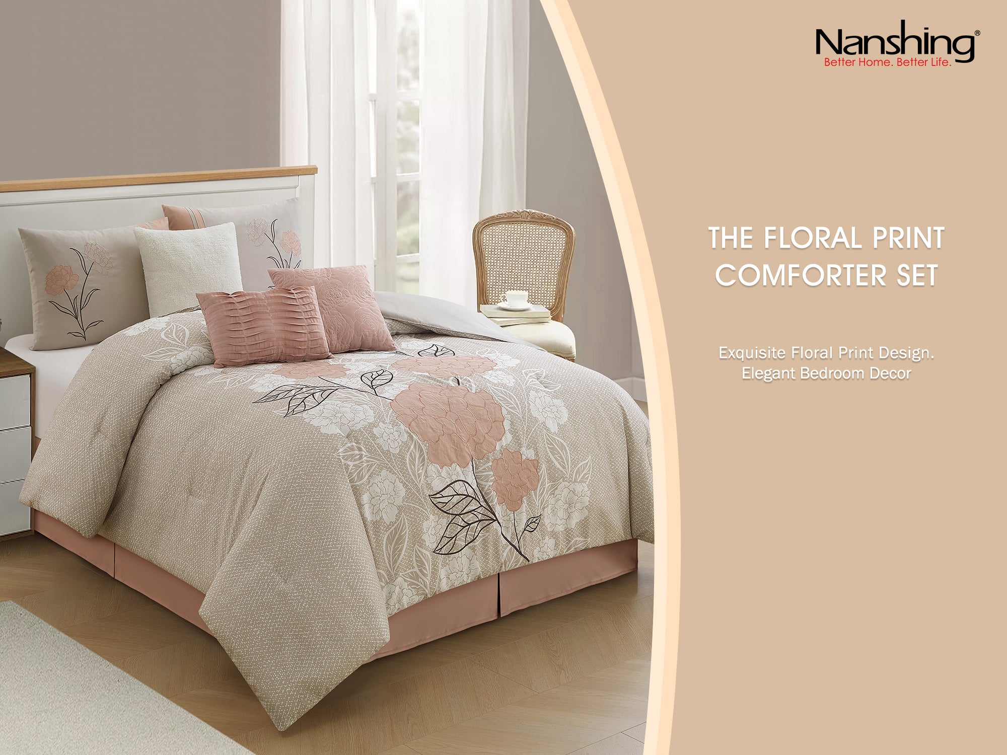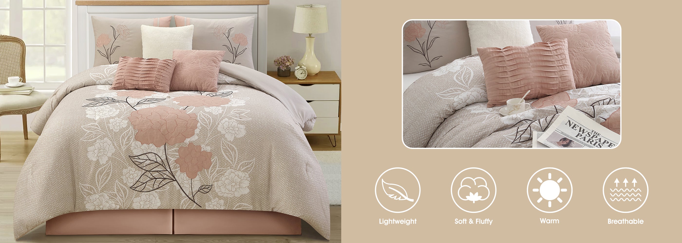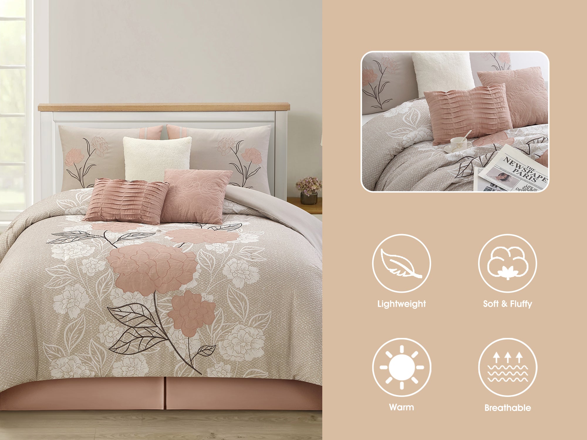 Camellia 7 Piece Comforter Set, Blush, Floral