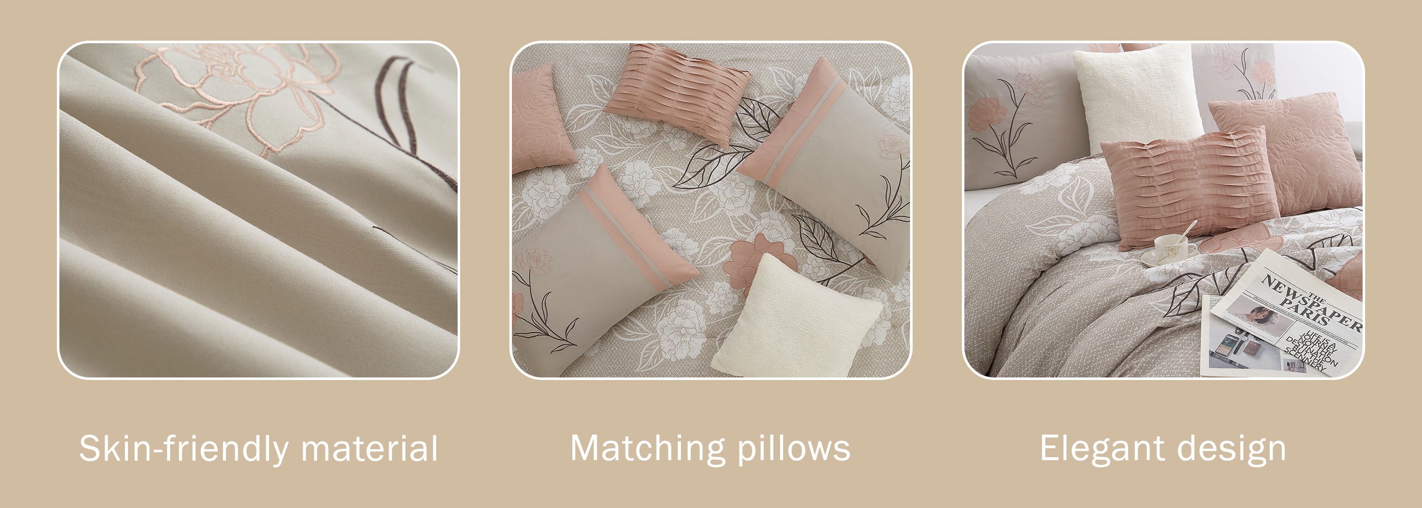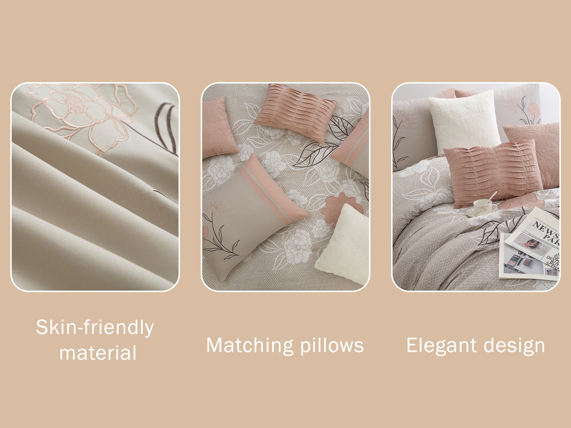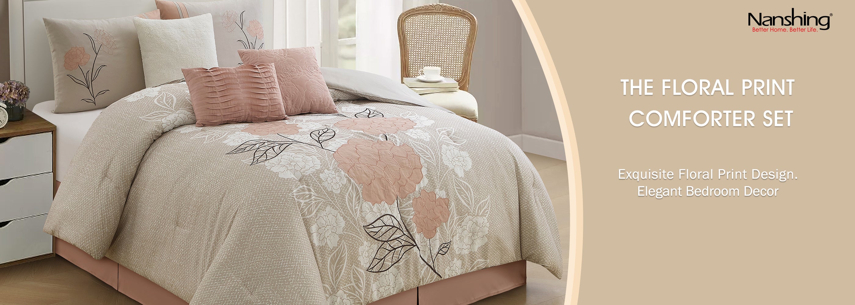 Camellia 7 Piece Comforter Set, Blush, Floral