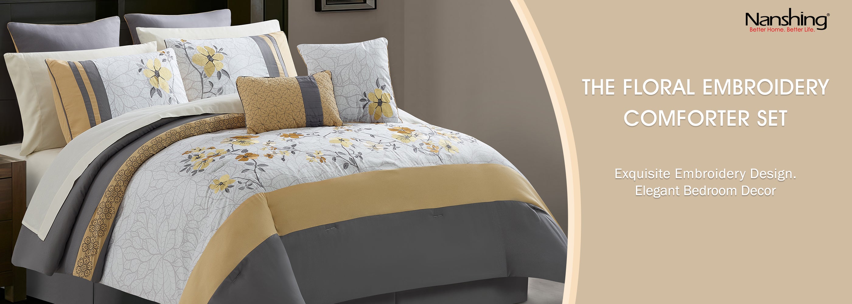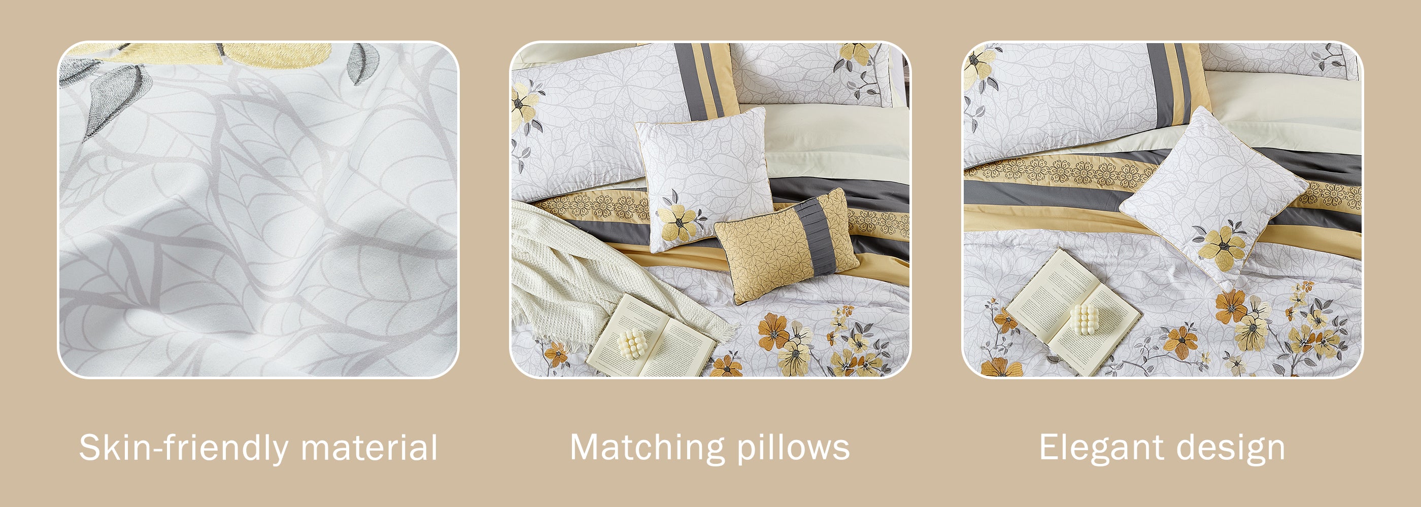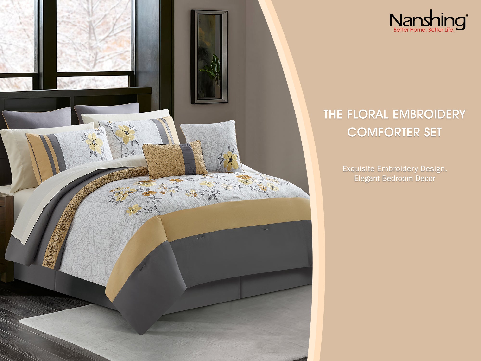 Candice 12-Piece Floral Comforter Set, Grey/Yellow