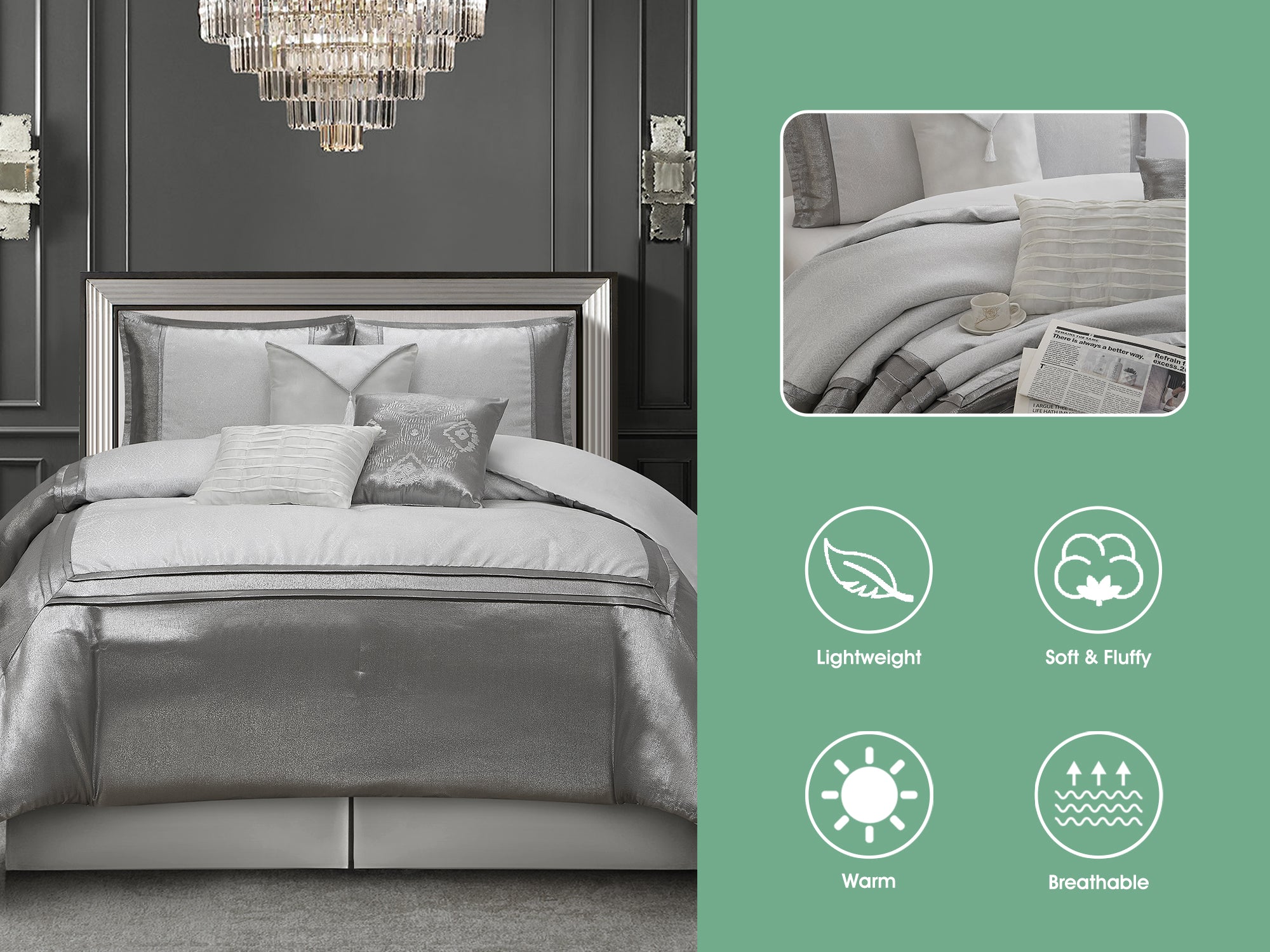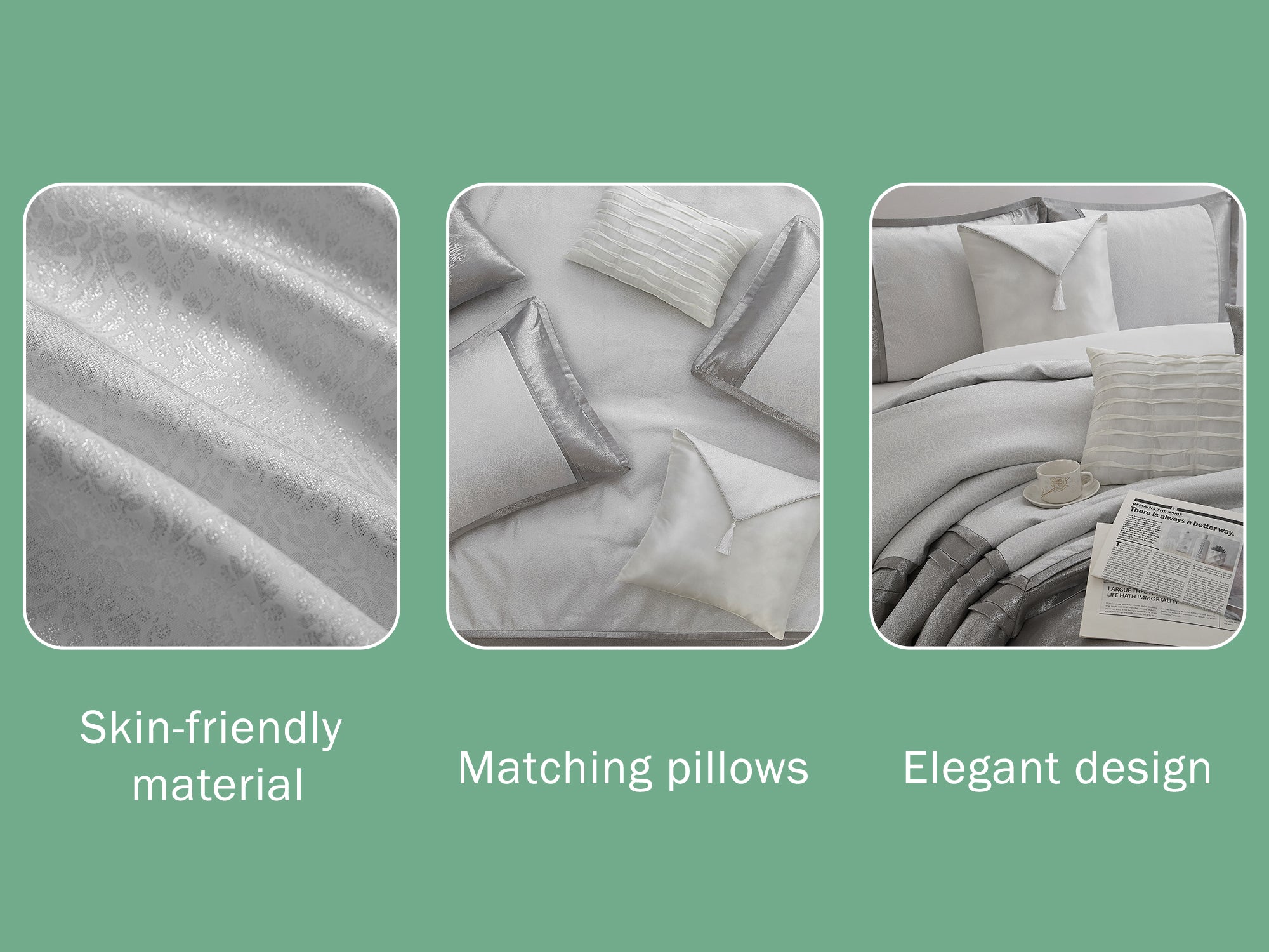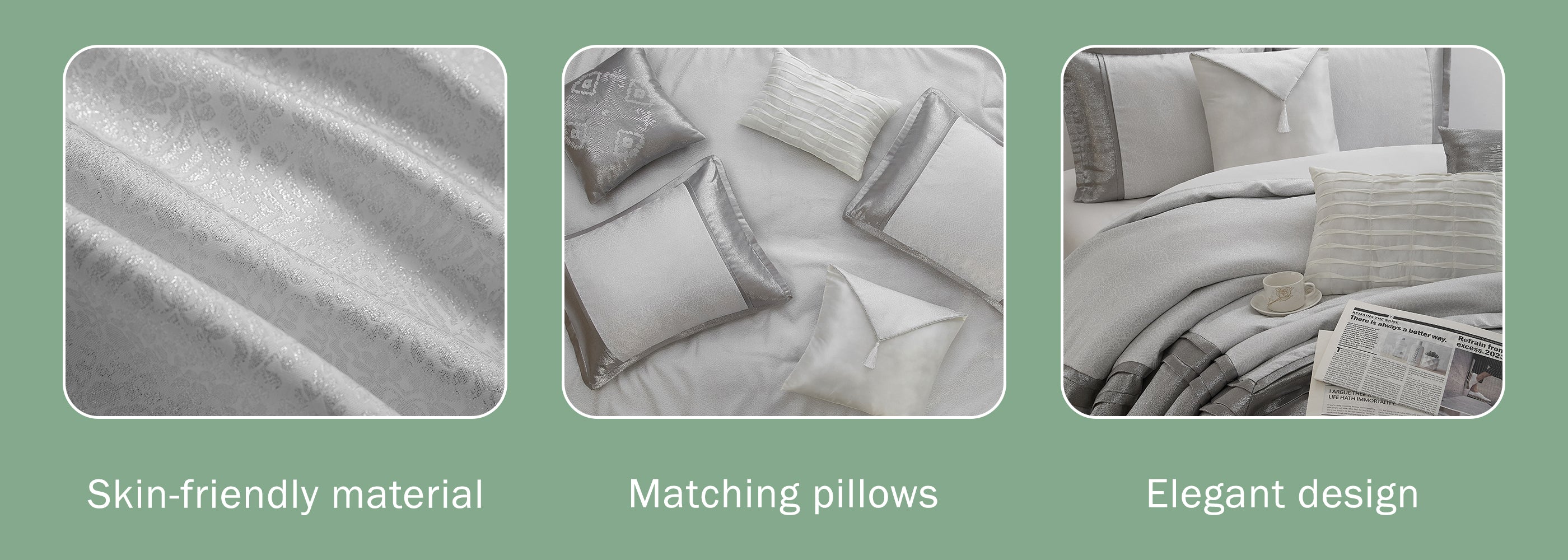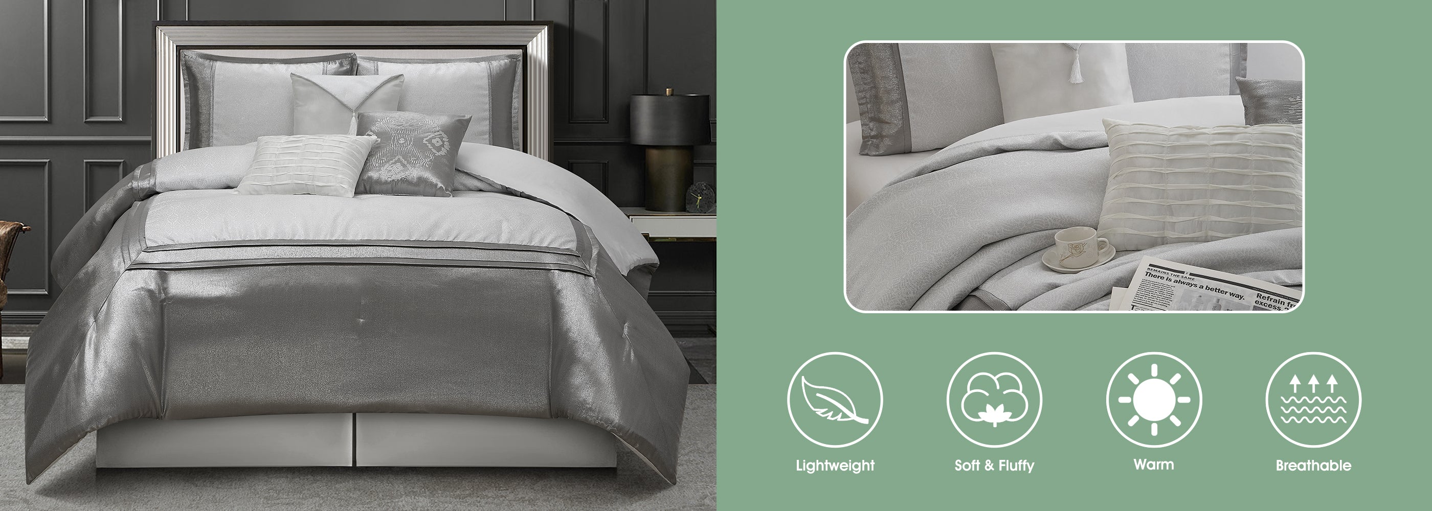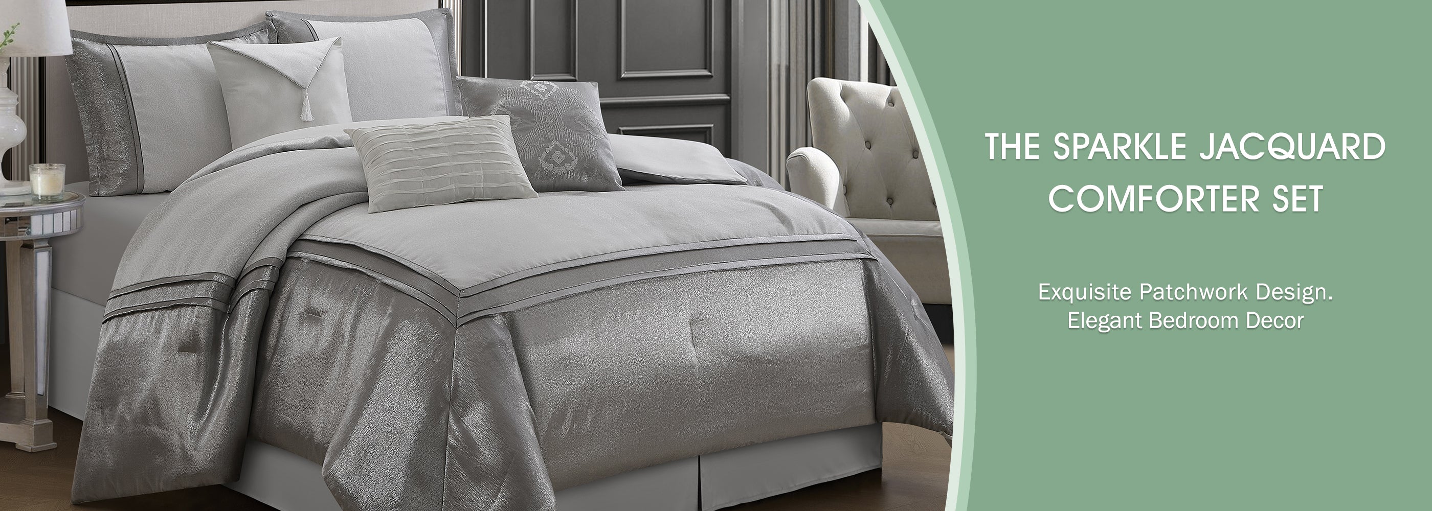 Beautiful sparkle comforter set will fill your room with luxury comfort. Darker and lighter silver color give a good contrast and very rich look to your room. This timeless beauty goes very well with any interior stiles.