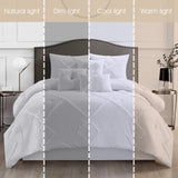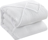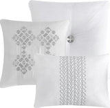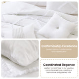 Turn your bedroom into a slumber retreat with this beautiful and elegant comforter set featuring a 3D clip jacquard technique for surface interest in an interlocking pattern. This 7PC set is a quick refresh to your bedroom decor that works for varied lifestyles such as casual elegance, boho, farmhouse, and back-to-school. Constructed of 100% polyester fabric and filling, this bed set comes with 1 comforter, 2 shams, 1 bed skirt, and 3 decorative pillows that flaunt excellent workmanship and quality. The complete bed set built to last, this bedding set is made with strict quality control standards and comes with everything you need for a complete bedroom makeover. Made with high strength polyester, this beautiful bedding set can be machine washed and dried on a low tumble setting for easy care.