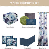 Eyla 9 Piece Floral Comforter Set, Blue/Purple