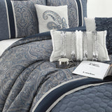 Geraldine 7 Piece Comforter Set, Navy, Paisley