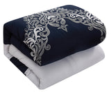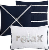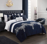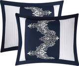 This comforter set exudes elegance and relaxation. It is a great piece of bedding to elevate any bedroom. The contrast navy and off white colors with graceful embroidery make this set very unique and charming.