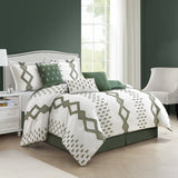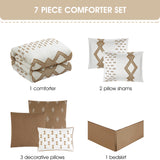 Set Includes: (1) Comforter, (2) Pillow Shams, (1) Bed skirt, (3) Decorative Pillows