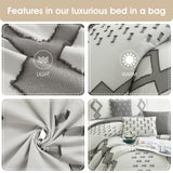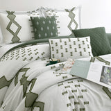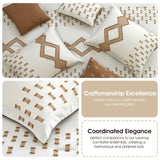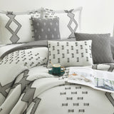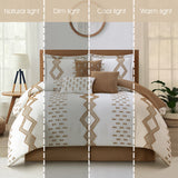 Featuring a stunning clipped technique, this comforter set showcases a textured geometric pattern that effortlessly blends boho and modern styles for a chic and classy look. The intricate design adds depth and visual interest, making it a captivating focal point in any bedroom. Crafted from high-quality materials, this comforter set provides a soft and cozy feel, ensuring comfort and warmth throughout the night. Ideal for those who appreciate a blend of contemporary flair and relaxed sophistication, this set enhances any space with its stylish and inviting aesthetic.