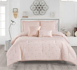 Trisha 5 Piece Comforter Set, Pink/Blush, 3D raised circles