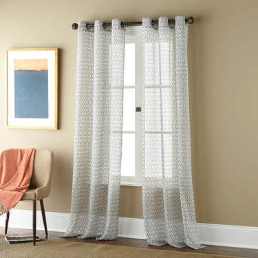 Clipped Diamond Sheer Grommet Window Curtain set of 2, Black