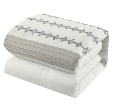 Fabiola 5-Piece Comforter Set, White/Grey, Abstract