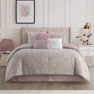 Fraidy 7 Piece Comforter Set Pink, 100% Cotton