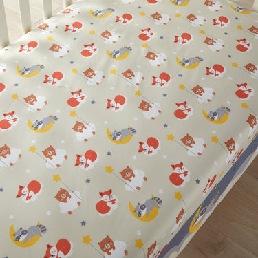 Good night Bear and Fox 3 Piece Baby Nursery Crib Bedding Set, Grey/Beige, 33 x 42, Animal Print