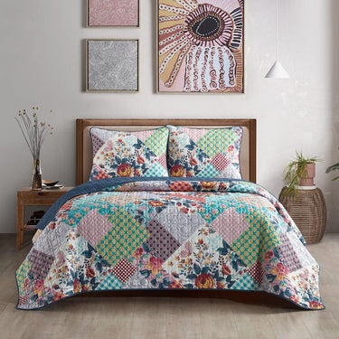 Give your bedroom a soft luxurious update with this beautiful 3 piece updated patchwork cottage quilt printed in fresh saturated pastels, filled with the perfect mix of flowers and gingham. Constructed of 100% polyester, this quilt set comes with one (1) quilt and two (2) matching shams. The complete bed set built to last, this bedding set is made with strict quality control standards and comes with everything you need for a complete bedroom makeover. Made with high strength polyester, this beautiful bedding set can be machine washed and dried on a low tumble setting for easy care.