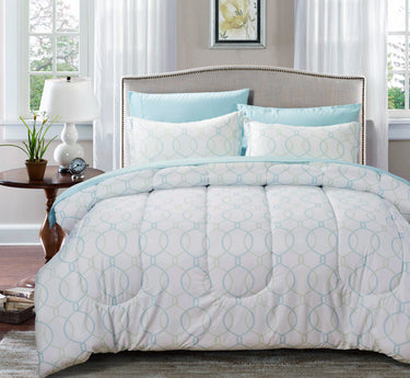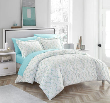 Monarch 7-Piece Bed-In-A-Bag, White/Aqua, Geometric
