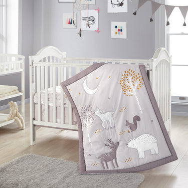 Happy Reindeer and Bear 3 Piece Baby Nursery Crib Bedding Set, Grey, 33 x 42, Animal Print