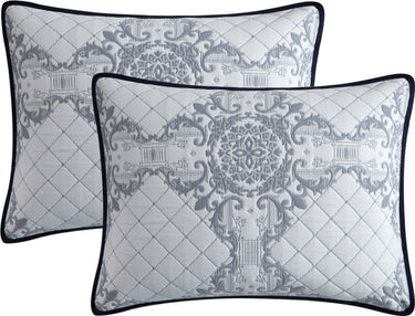 Give your bedroom a soft luxurious update with this beautiful 3 piece jacquard quilt with a tile medallion pattern that bridges from transitional, to classical, to global. Constructed of 100% polyester, this quilt set comes with one (1) reversible jacquard quilt and two (2) matching shams. The complete bed set built to last, this bedding set is made with strict quality control standards and comes with everything you need for a complete bedroom makeover. Made with high strength polyester, this beautiful bedding set can be machine washed and dried on a low tumble setting for easy care.
