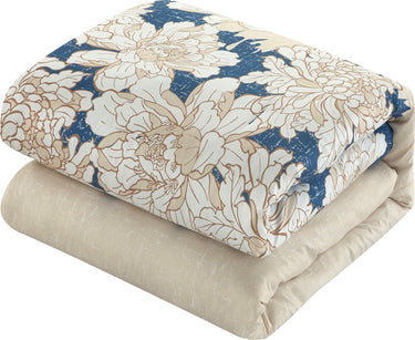 Wealthy 7 Piece Floral Comforter Set, Blue/Beige