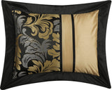 Set Includes: (1) Comforter, (2) Shams, (1) Bed skirt, (3) Decorative Pillows