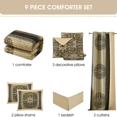 Myhand 9 Piece Damask Comforter Set