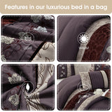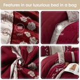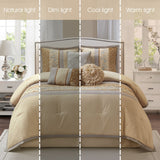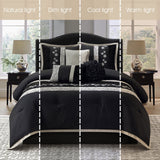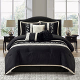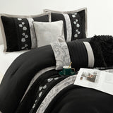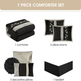 Set Includes: (1) Comforter, (2) Shams, (1) Bed skirt, (3) Decorative Pillows