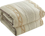 Bring a soft, mid-century look to you bedroom with this beautiful 7 piece comforter set. The ivory comforter features geometric prints with soft terry embroidery that adds dimension and charm to the bedding set. Naturally breathable and lightweight fabric combine with embroidery for a perfect all season bedding. Constructed of 100% polyester fabric and filling, this bed set comes with one (1) cozy comforter, two (2) shams, one (1) solid bed skirt, and three (3) plushy pillows that flaunt excellent workmanship and quality. The complete bed set built to last, this bedding set is made with strict quality control standards and comes with everything you need for a complete bedroom makeover. Made with high strength polyester, this beautiful bedding set can be machine washed and dried on a low tumble setting for easy care.