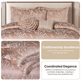 This stunning comforter set, featuring a jacquard rose-inspired design, effortlessly elevates your bedroom decor with a touch of glamour. Its vibrant color complements a range of decorating styles, making it the perfect choice for homeowners with refined tastes in home decoration. Crafted from super-soft, durable, and fade-resistant material, this bedding set is not only machine washable but also cool and breathable, ensuring a warm and comfortable night's sleep. The lightweight comforter's smooth texture makes it suitable for individuals of all ages and ideal for year-round use.