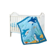 Baby Shark 3 Piece Nursery Crib Bedding Set, Blue, 33 x 42, Animal Print