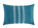 Relish a peaceful retreat with this stylish 5-piece comforter set. Fabulous embroidery and quality stitching adorn the comforter and shams while a geometric print embellishes the pillows to rejuvenate the appearance of your master suite or guest room. This grey and white themed bed set comes with (1) cozy comforter and two (2) shams that match the design of the comforter. Two (2) ornamental pillows fashionably complete the shabby elegance of this bedding set. Made of soft polyester fiber, this comforter set is machine washable and can be put in a dryer to keep it fresh and clean.