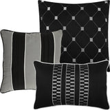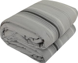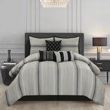 Give your bedroom a cozy and elegant ambiance with this beautiful comforter set. Features a classic light gray, black & off-white striped design for the perfect mix of traditional style with a modern flair. Constructed of 100% polyester fabric and filling, this bed set comes with one (1) cozy comforter, two (2) shams, one (1) solid bed skirt, and three (3) plushy pillows that flaunt excellent workmanship and quality. The complete bed set built to last, this bedding set is made with strict quality control standards and comes with everything you need for a complete bedroom makeover. Made with high strength polyester, this beautiful bedding set can be machine washed and dried on a low tumble setting for easy care.