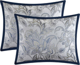 Give your bedroom an instant makeover with this beautiful comforter set. This seven-piece bedding set includes all you need for a restful retreat in modern style. Crafted from polyester, each item displays a time-honored floral, paisley pattern in neutral grey and navy hues that blend well with existing decor.