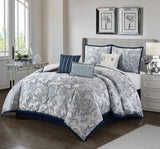 Elisia Leaves 7-Piece Comforter Set, Navy