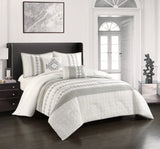 Fabiola 5-Piece Comforter Set, White/Grey, Abstract