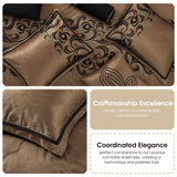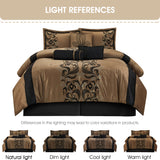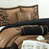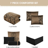 Complete your bedroom with refined elegance with this 7-piece comforter set. With a comforter, two shams, a bed skirt, and three decorative pillows, the set offers a perfect combination of comfort and style. The floral pattern in tan and black complements any bedroom with elegant sophistication.