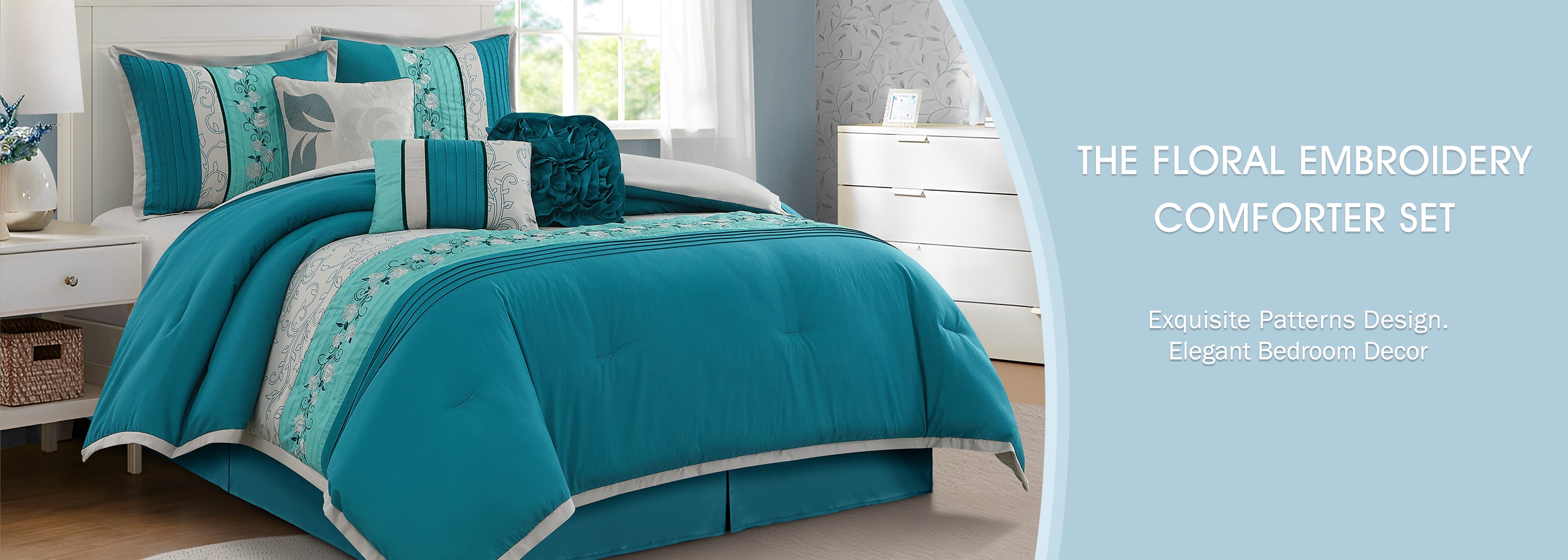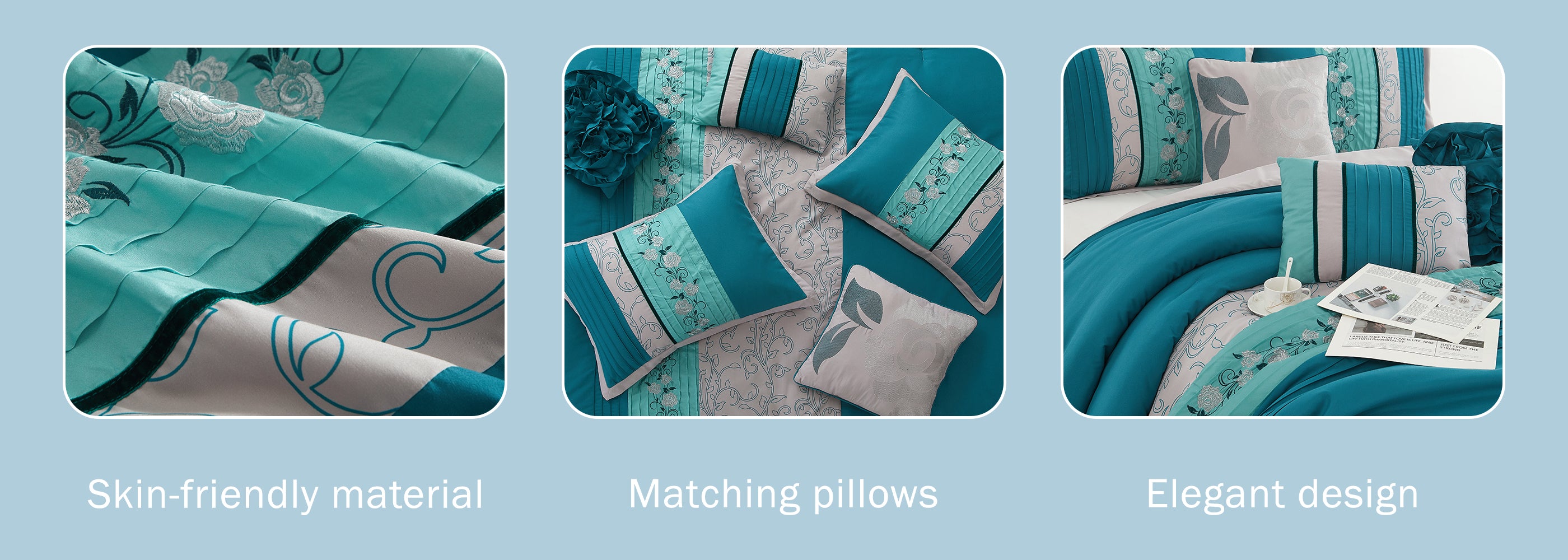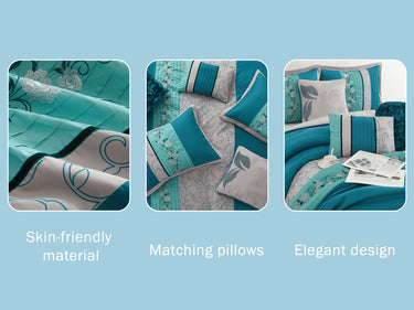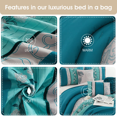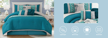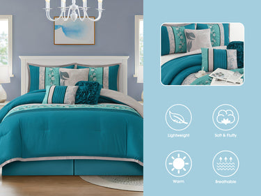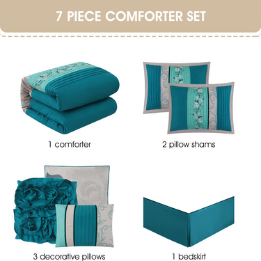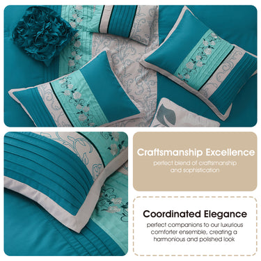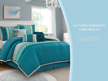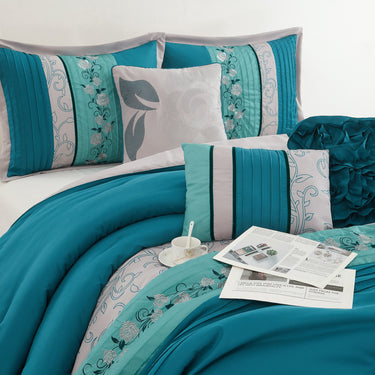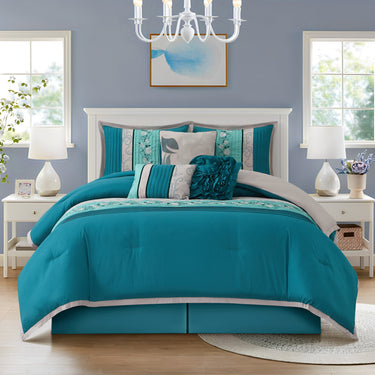 Juliana Floral 7-Piece Comforter Set, Teal/Grey