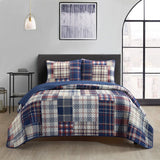 Mareline Plaid 3 Piece Quilt Set, Blue