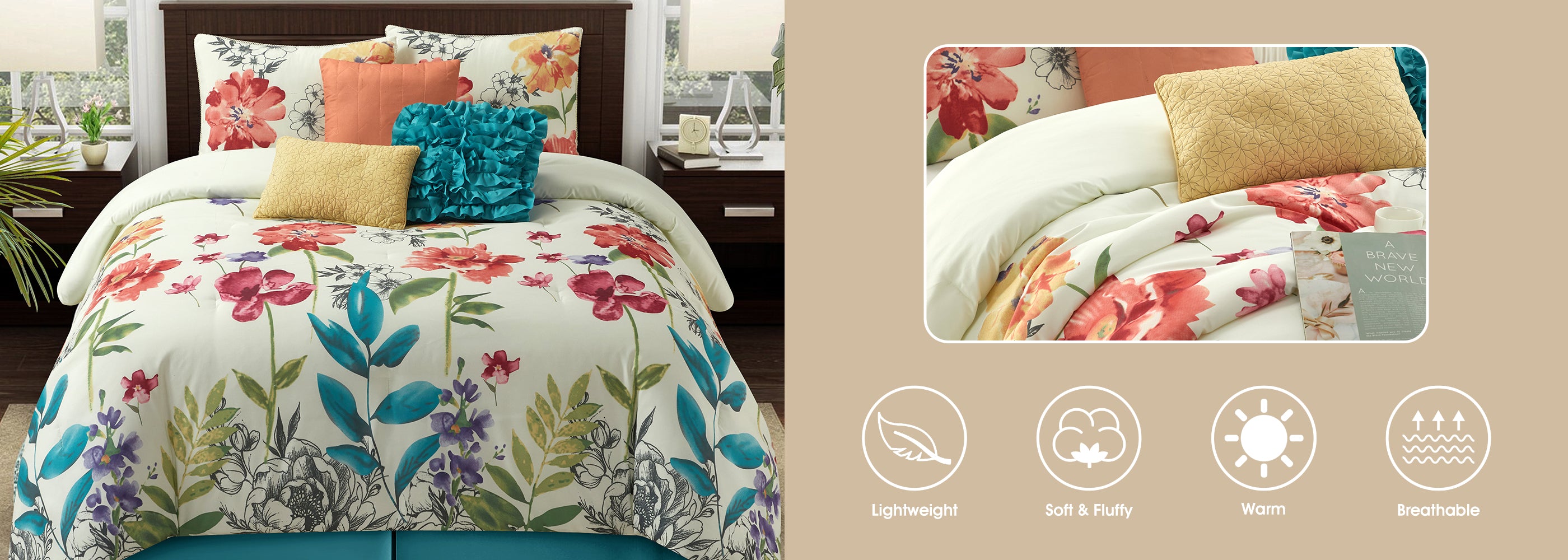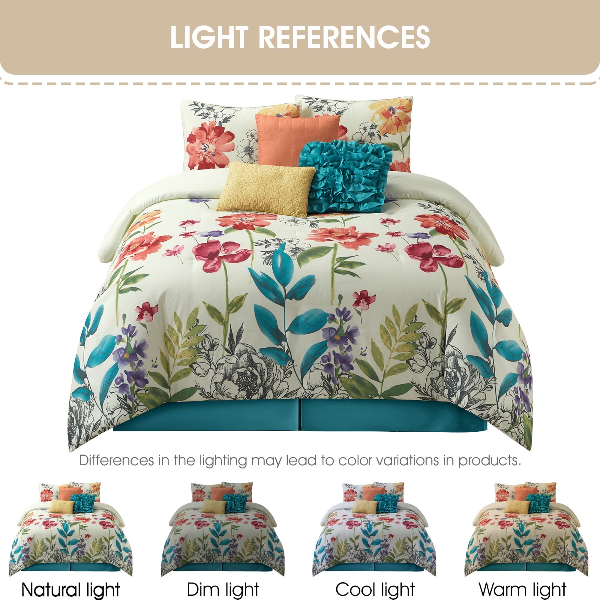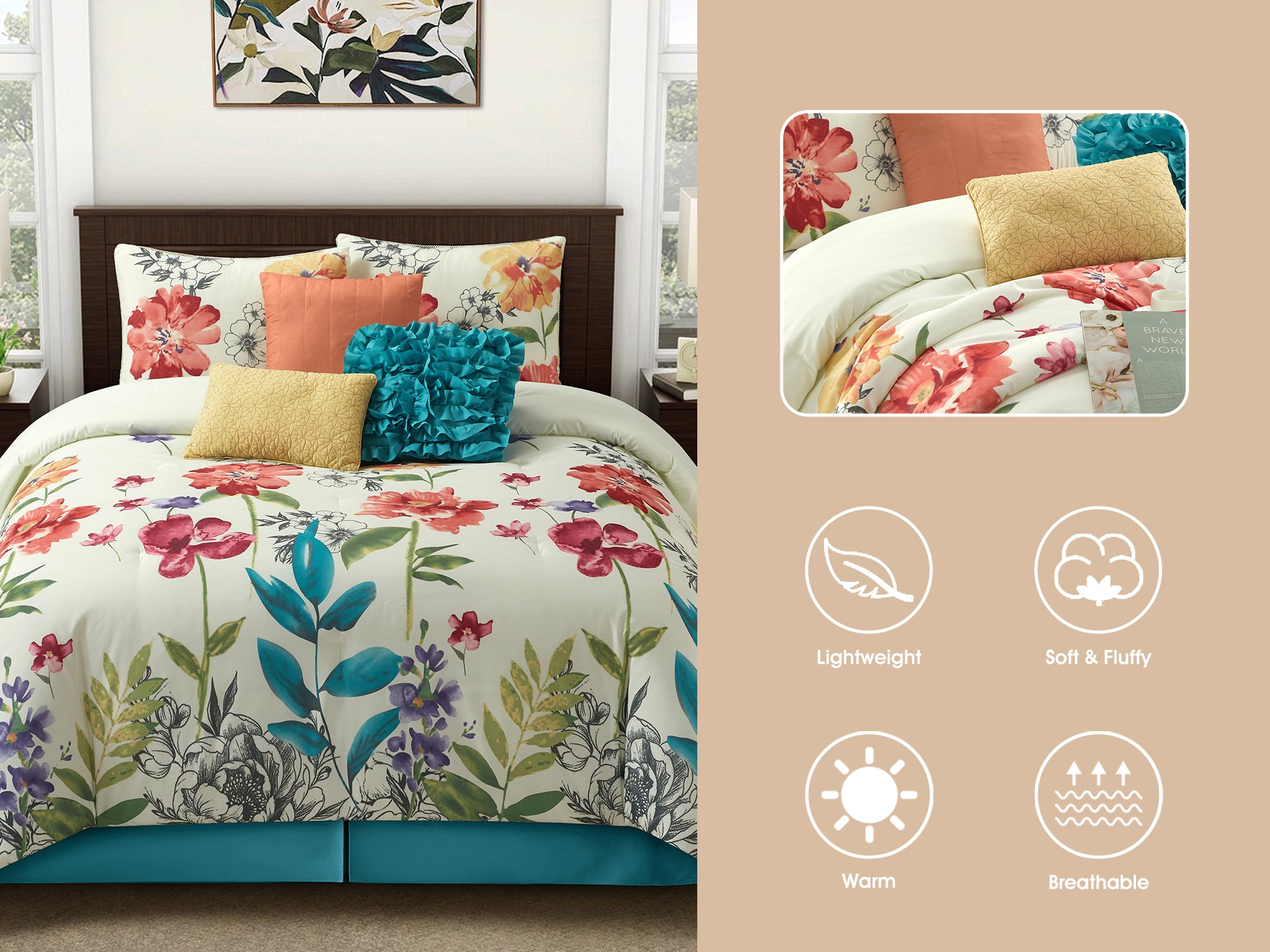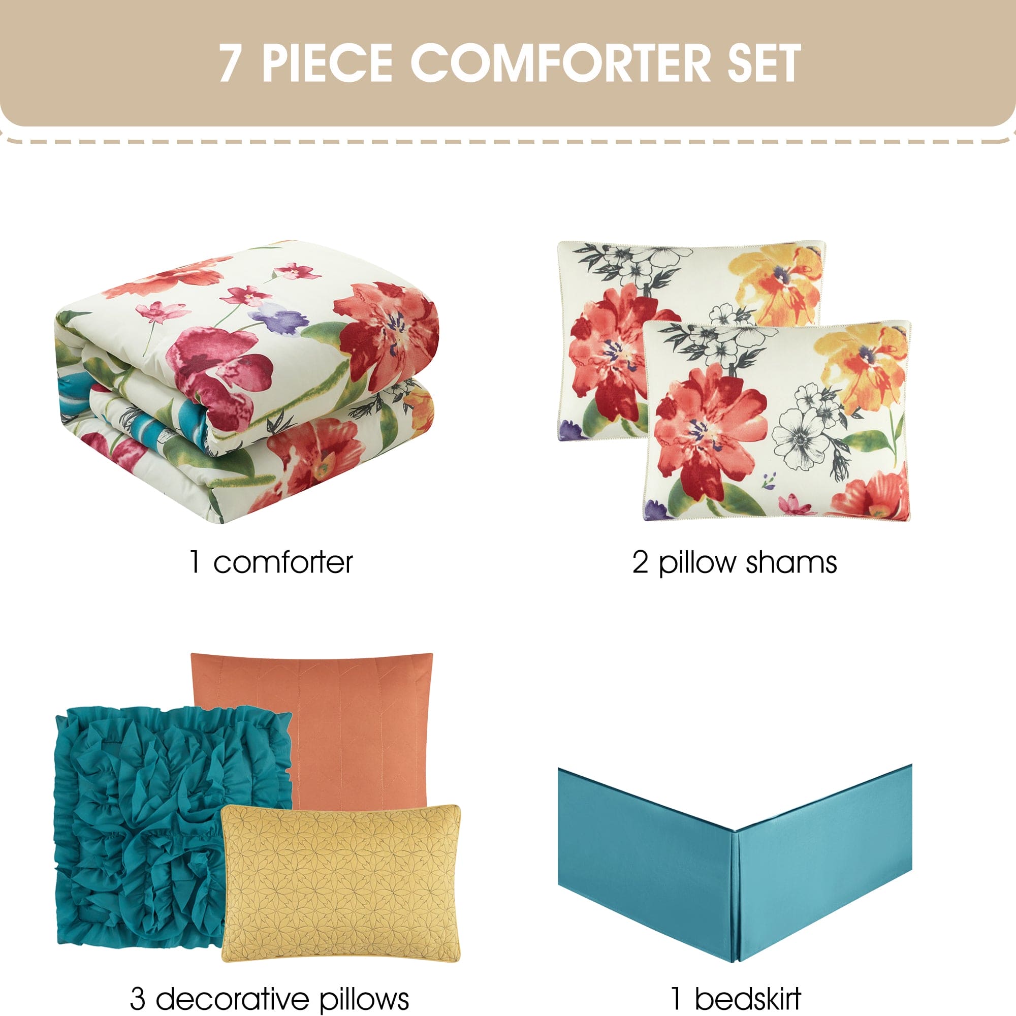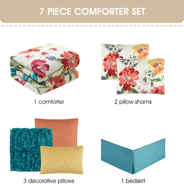 Prair Floral 7-Piece Comforter Set, Multi-Color