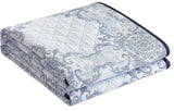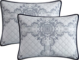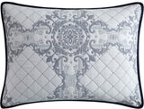 Sharai 3 Piece Quilt Set, Grey, Damask